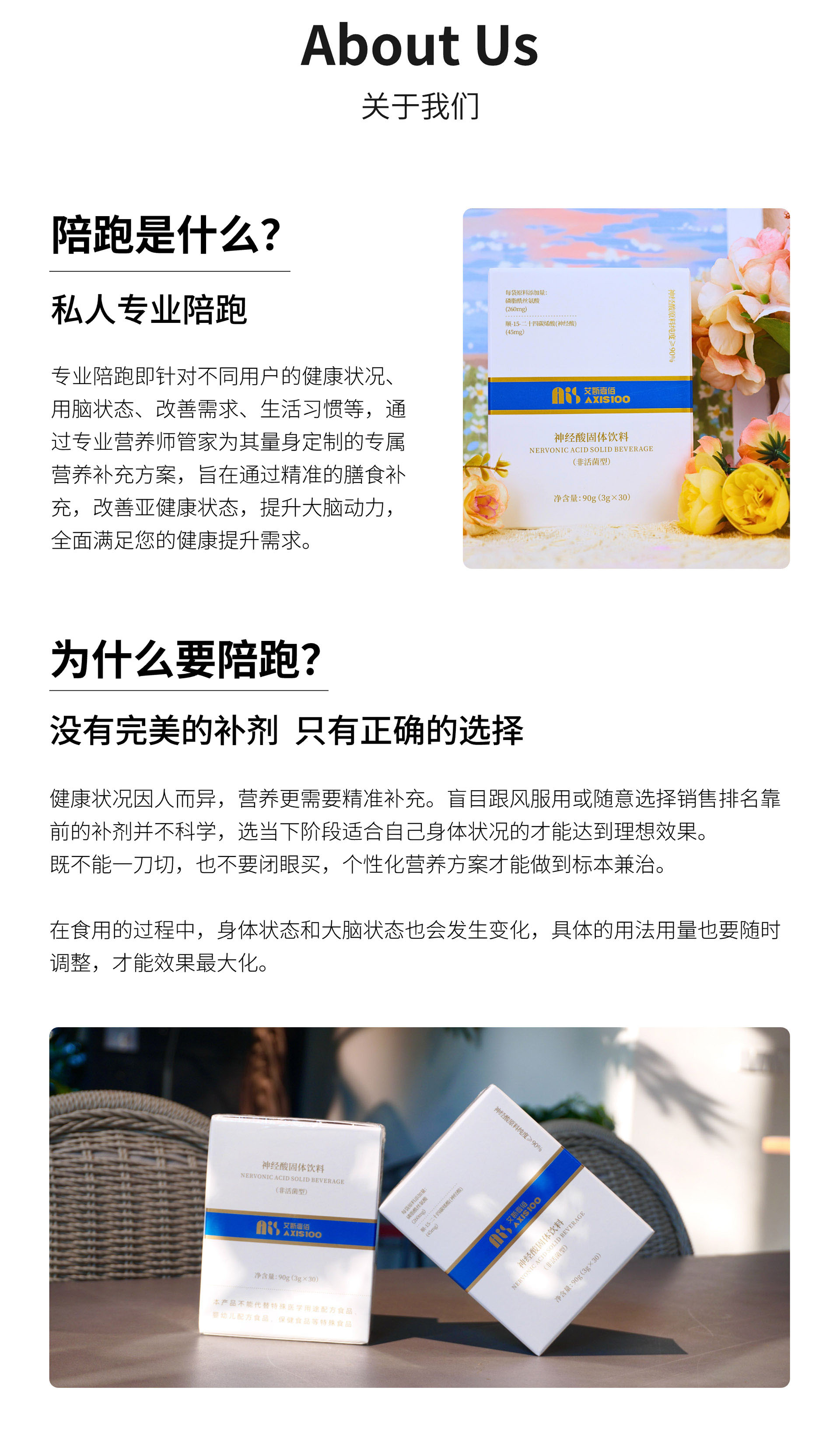 AXIS100艾斯壹佰是一个源自中国本土的食品品牌,专注于大脑营养健康,提供融合尖端科技与纯净天然成分的提升脑力、抵抗衰老的解决方案。